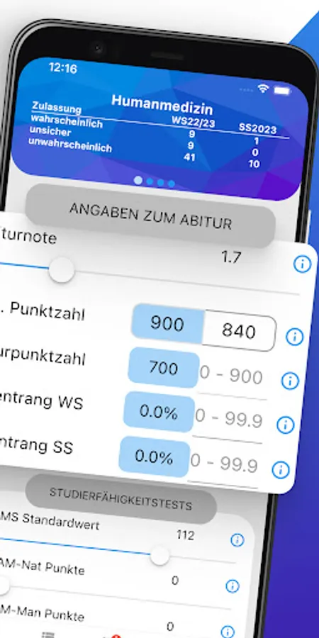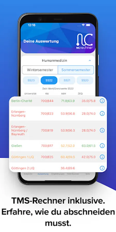 Enter your data and simply check the number of points you have received in the various procedures at the universities and which points you can still receive.