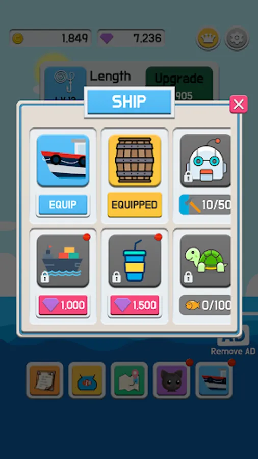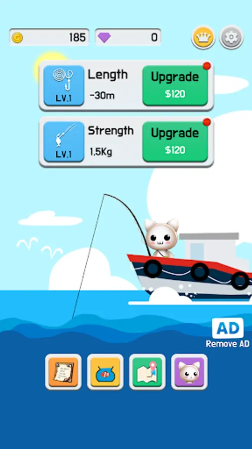 Improve your fishing line to go deeper and catch more fish!