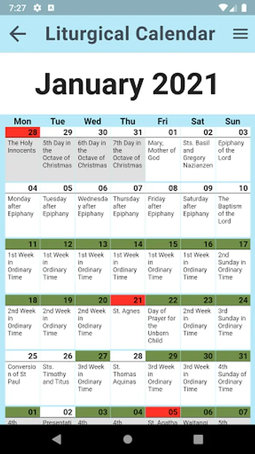 Liturgical Calendar