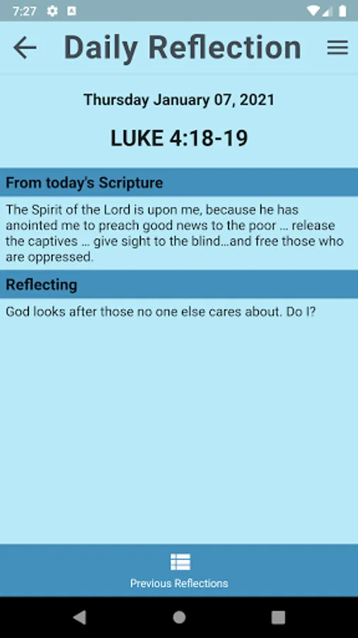 A daily renewed bible reading accompanied by a reflective interpretation. Past reflection can be searched and viewed as well.