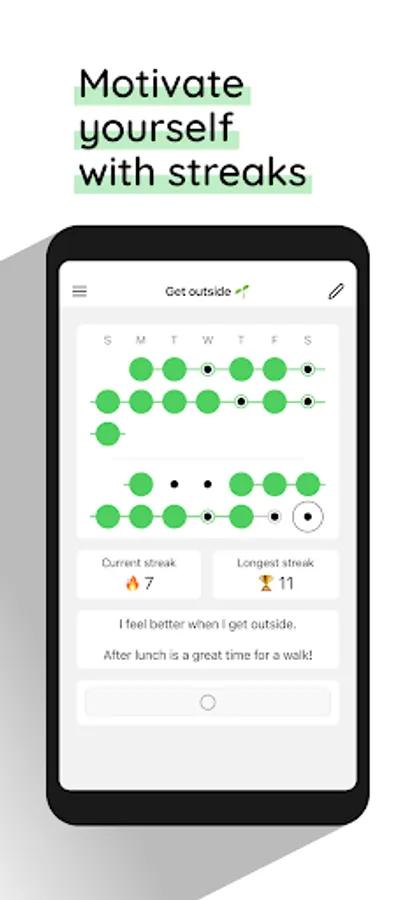 Most habit trackers break your habit streak after you miss one day. I found this frustrating, because it's normal to miss a day here or there; life gets in the way of your habits. When I was trying to build a new habit and inevitably missed a day, my streak would break and halt my momentum. This felt demoralizing, because I was setting unreasonable expectations for myself.