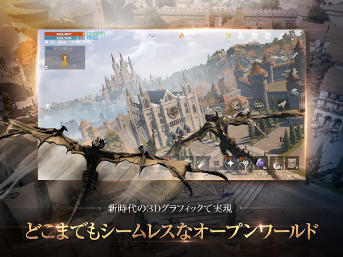 A fantasy world like a movie with amazing graphic technology such as high-definition drawn fields set in the continent of Aden, detailed cityscapes, delicately drawn armor patterns and precise character expressions. Deliver.
