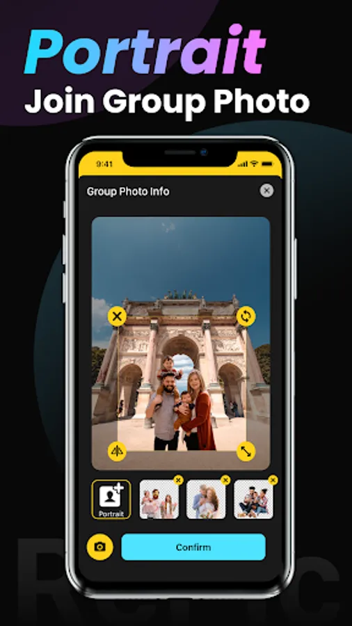 - Photo background eraser, supercuts facey, put photos together, get a vimage group shot
