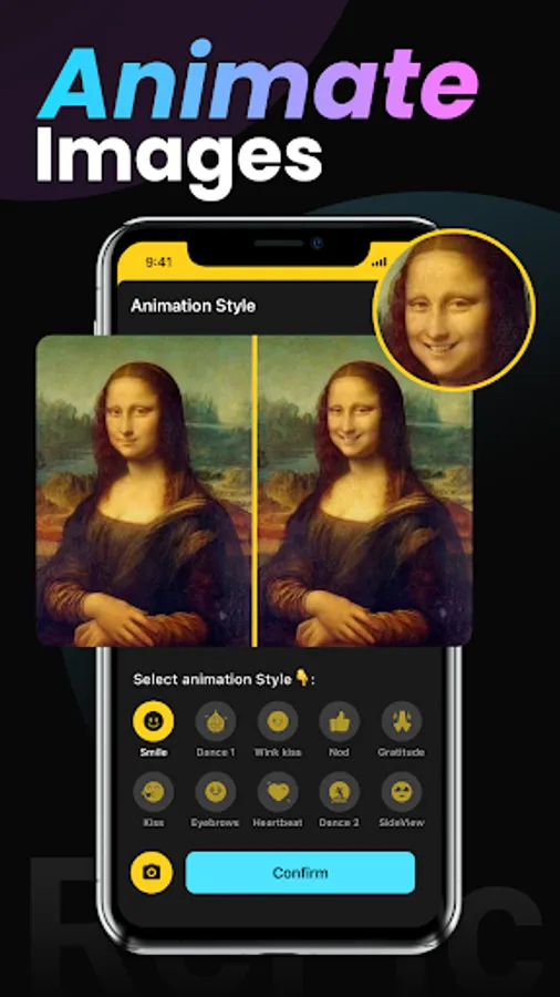 Powerful AI facial animation technology can animate photos, generate facial animation images, increase eye and mouth movements and a variety of facial expressions, then make person facey in photo arimoji and moving!