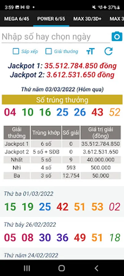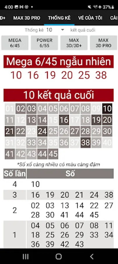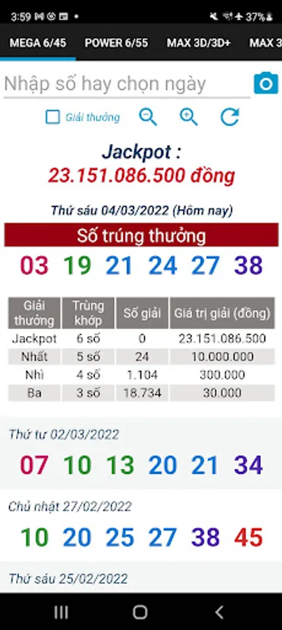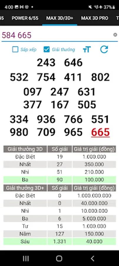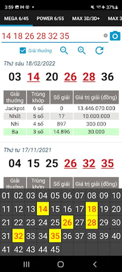 - Quét số Mega 6/45, Power 6/55 để tra.