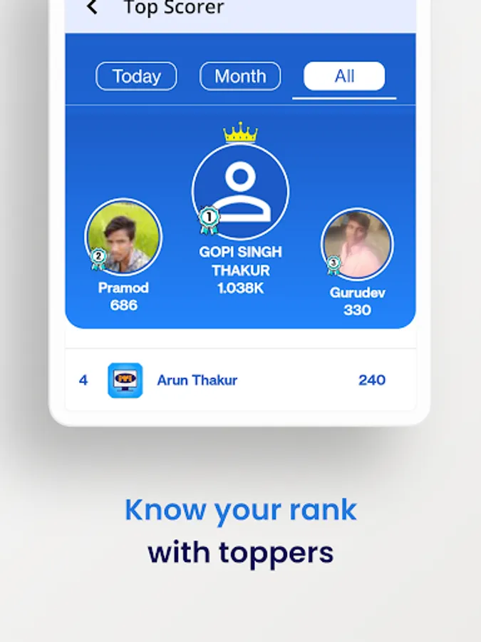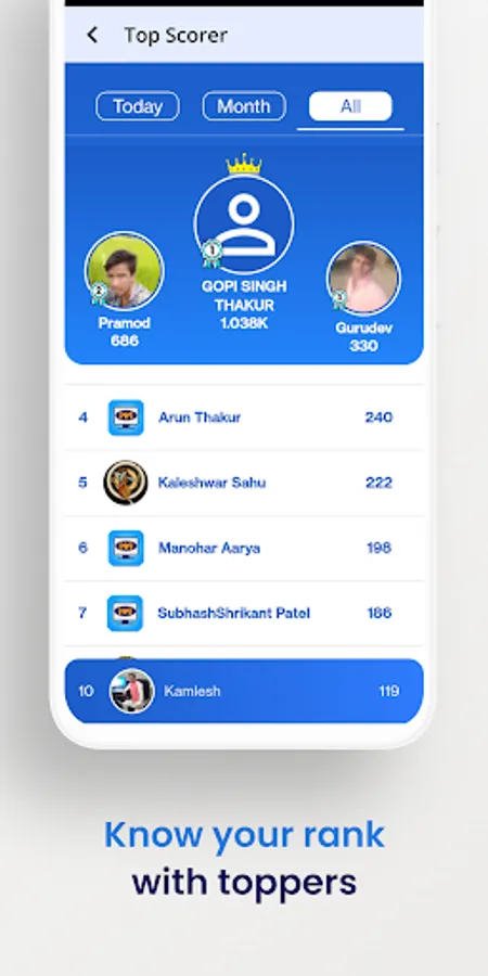 ✔ Know the top scorer of your trade and compare yourself