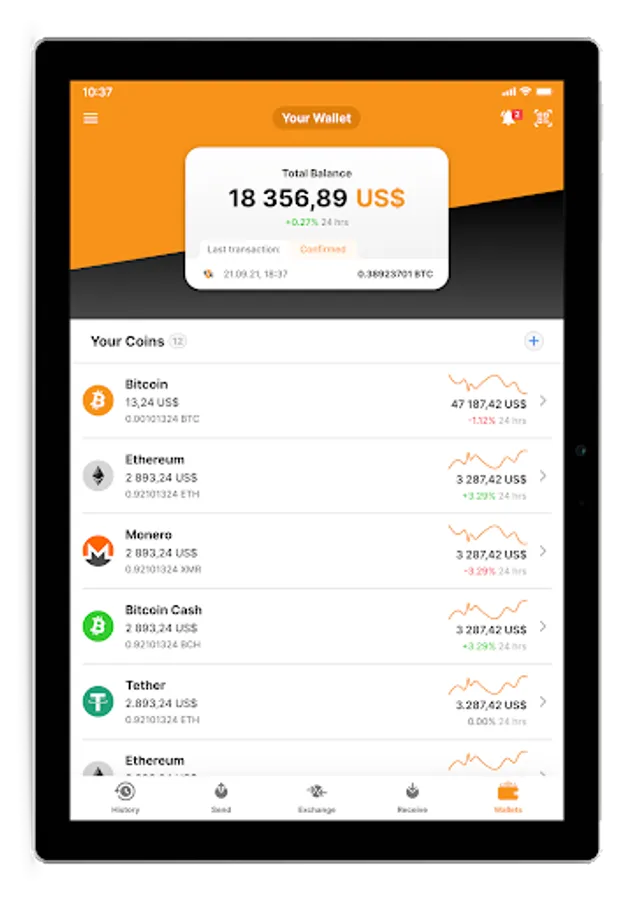 · Comprehensive security for your funds’ protection: two-factor authentication, PIN codes, biometric login, possibility to set transaction limits and block IP addresses.