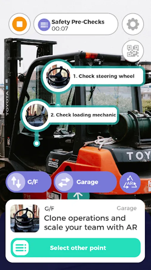 Your team can get instant access to your step-by-step guidance in the real world space, and follow steps to perform operations on your machines, assets, vehicles, facility and factory. With Inspekly, you can easily record your operation steps, so you can save it for on-boarding training where your employee can easily clone your operations approach.