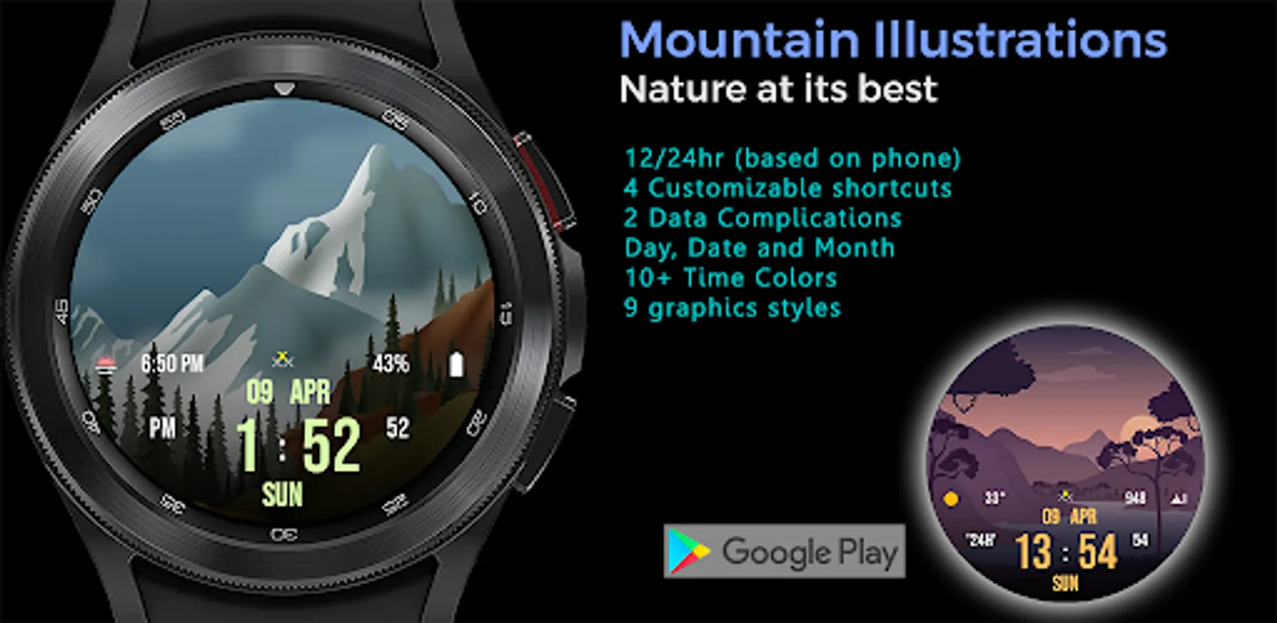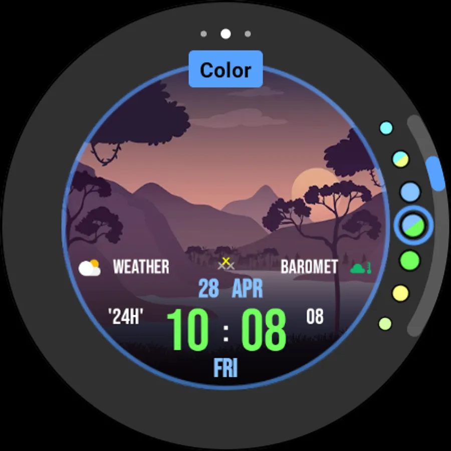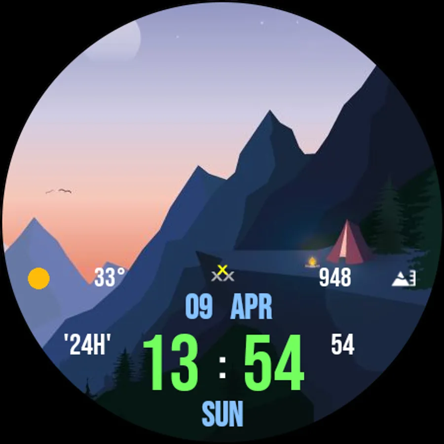 - 2 editable complications for data such as Barometer, Next event, etc.