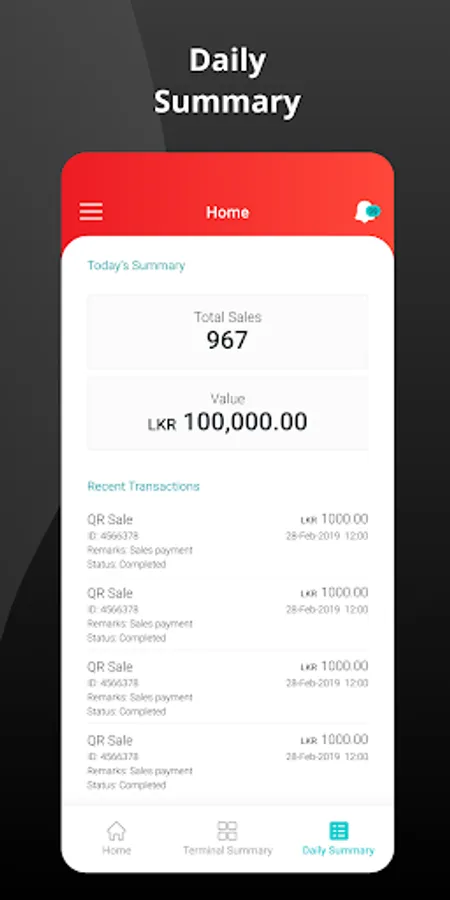 NEOS Merchant is a digital payment acceptance mobile app. A NEOS Merchant can use the payment app to transact with any LankaQR enabled app. The app is powered by National Development Bank PLC (NDB) enabling secure, fast transactions for merchants.