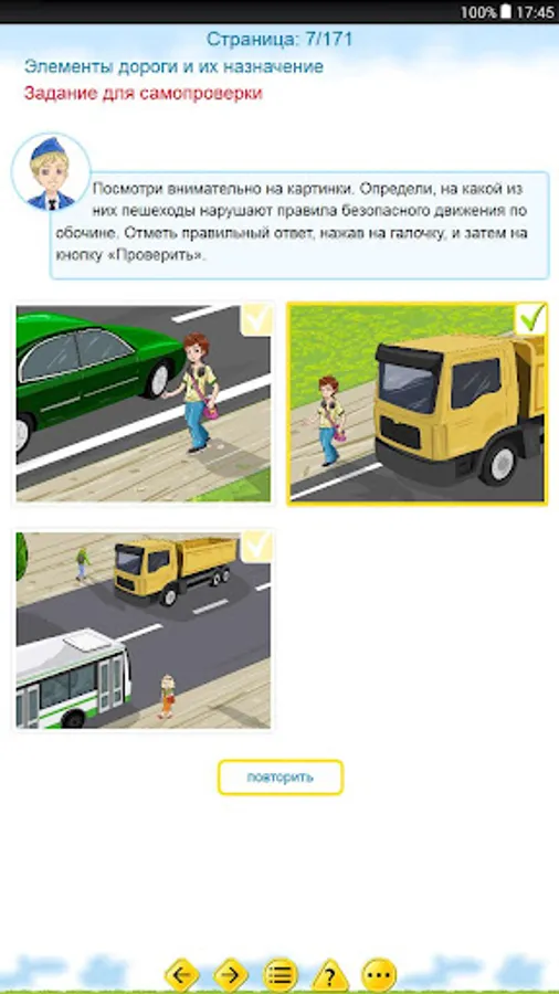 Electronic interactive course on road safety for school children grades 5-8 is designed to explain the rules of the road middle school students and to teach them to navigate the various traffic situations, they form a culture of safe behavior on roads, streets and in public transport.
