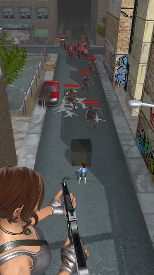 On the way she will meet bloodthirsty zombies, destroy them using tactics, exploding barrels and cars. Sometimes there will be roadblocks on her way, destroy them, let the survivor go ahead until the zombies get to her!