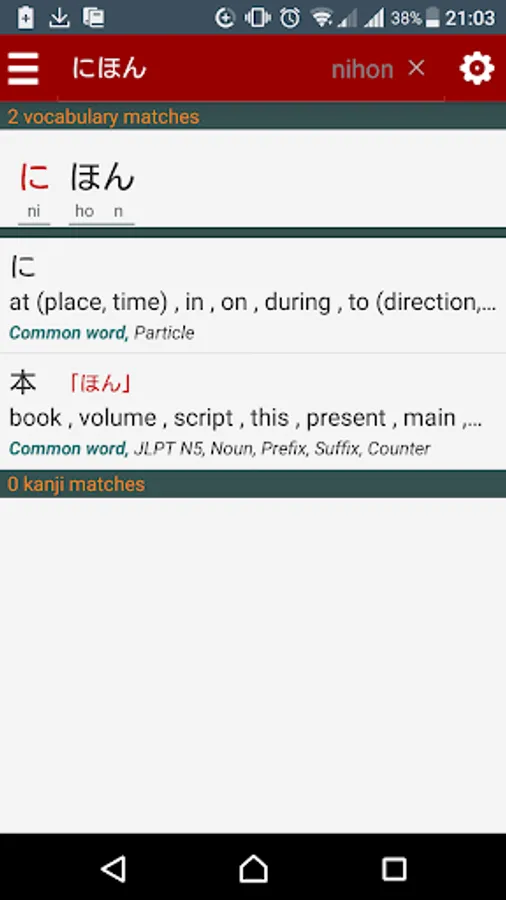 - kanji search is divided by ON/KUN readings, Nanori and meaning results