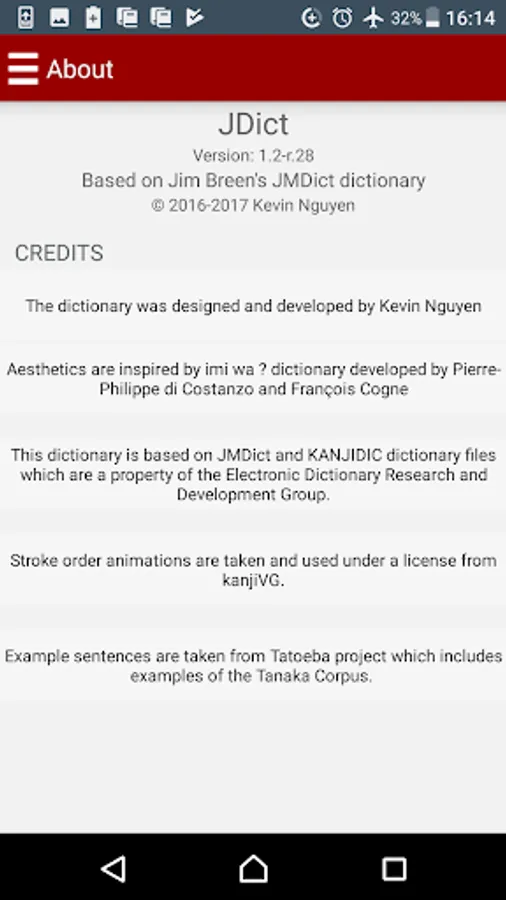 JDict is a Japanese-English offline dictionary featuring over 160000 entries, over 10000 kanji and almost 60000 example sentences.