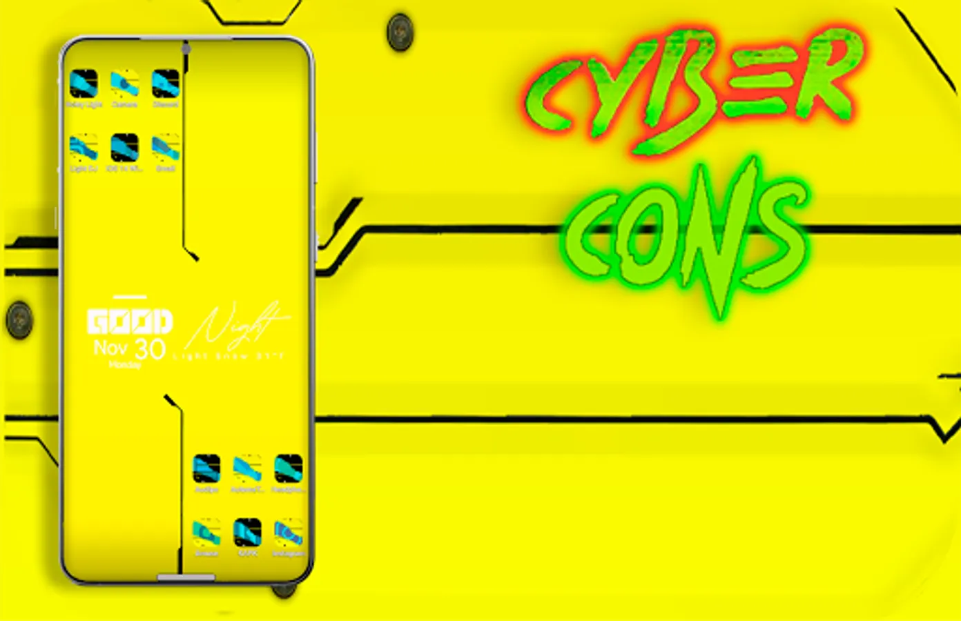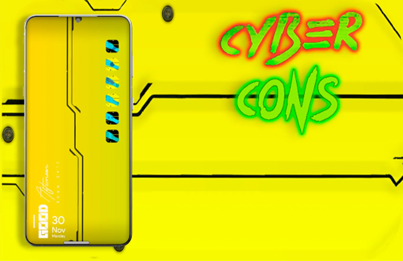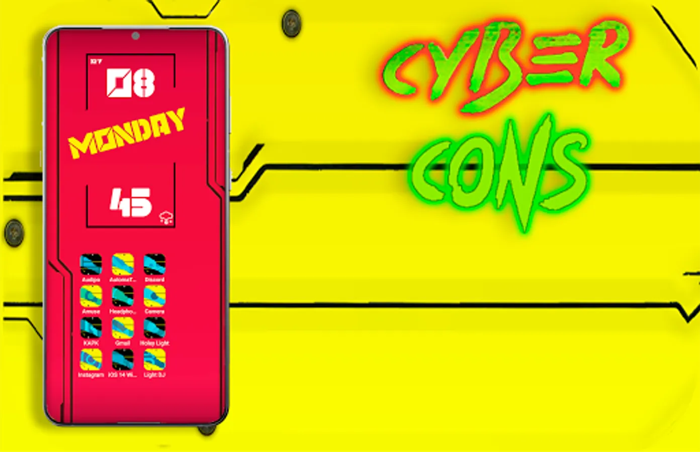 This is an icon mask that makes your icons have a cyberpunk style to them. I also included 5 wallpapers to go with it. The homescreen setups will be amazing with these.