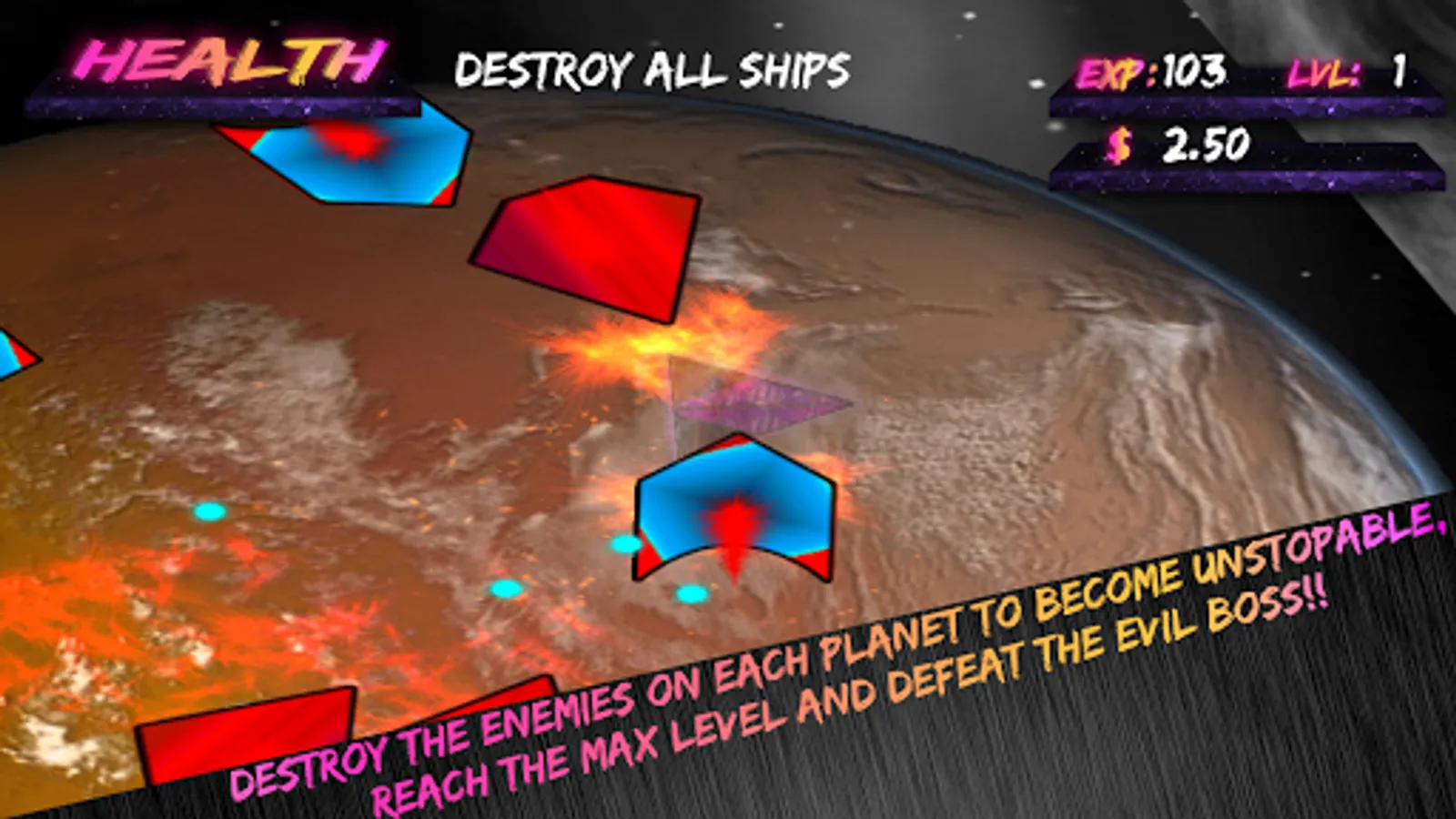 Prizm is a 2D open world space adventure game where your family has been abducted and you have to save them. You travel in an open world galaxy to different planets to destroy them. You earn money and exp along the way to level up and upgrade your ship. Reach level 50 to get ultimate status and beat the game.
