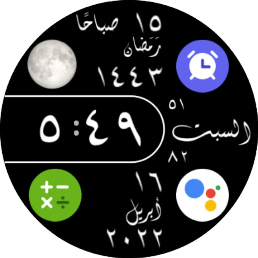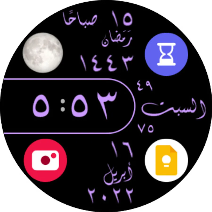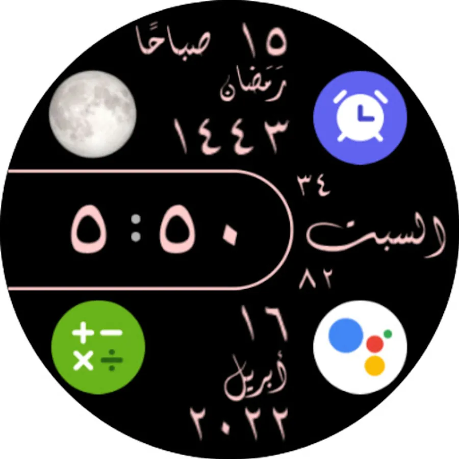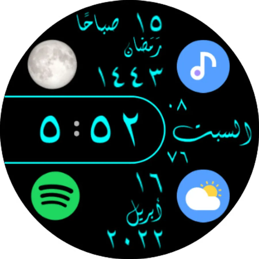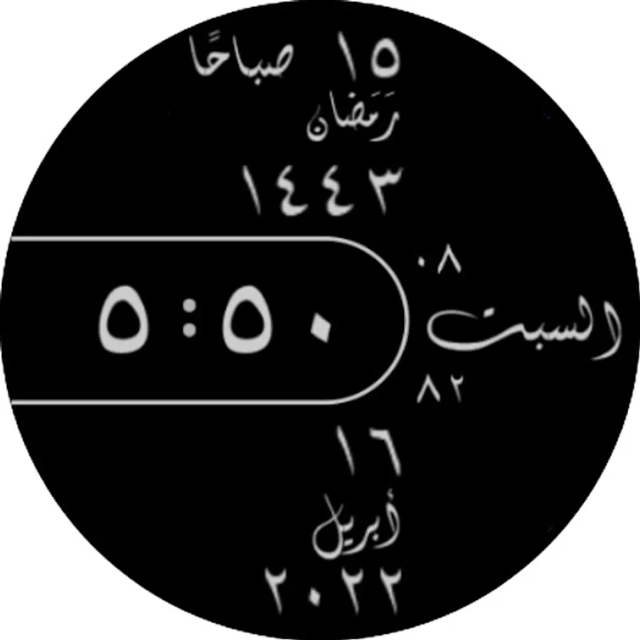 Diwany watch face is an Arabic watch face with Ummul Qura Hijri date and Gregorian date.