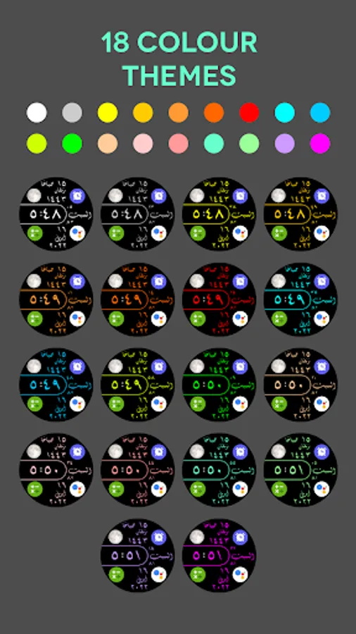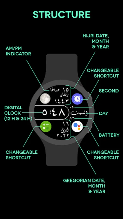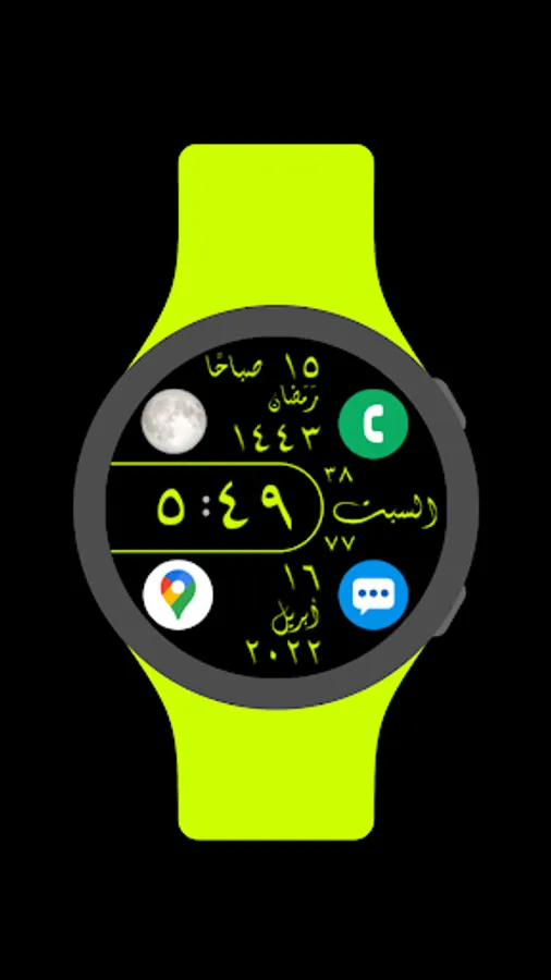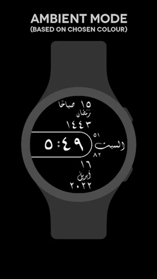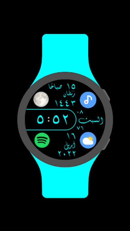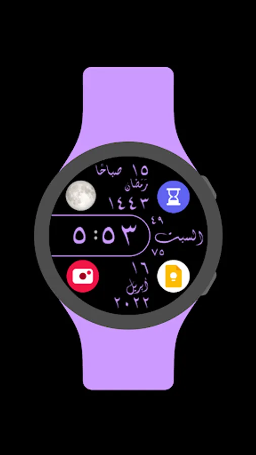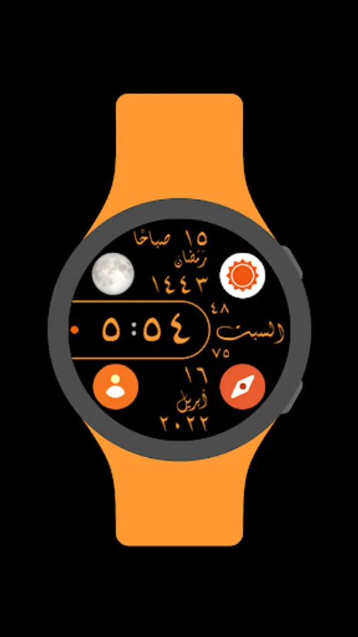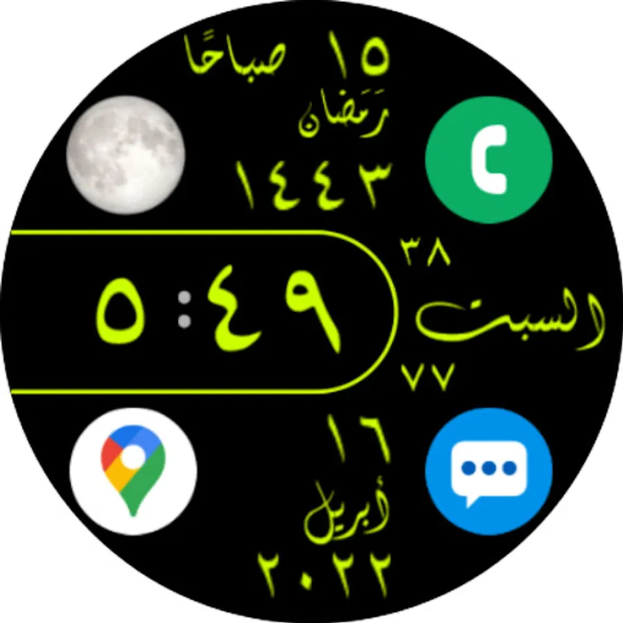 Diwany watch face is an Arabic watch face with Ummul Qura Hijri date and Gregorian date.