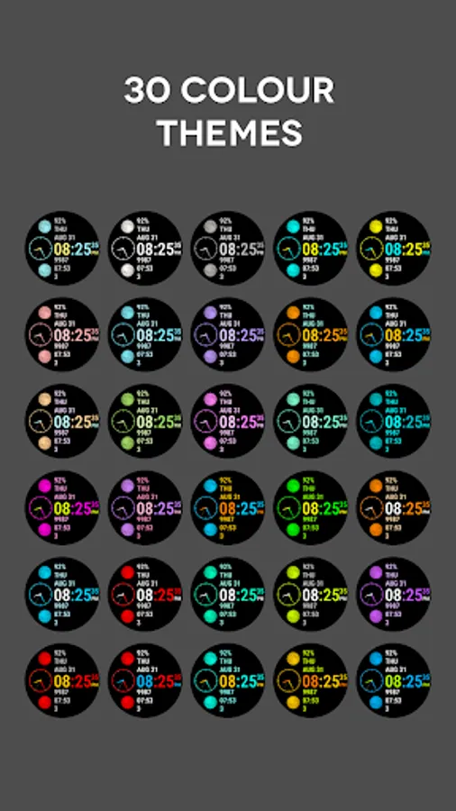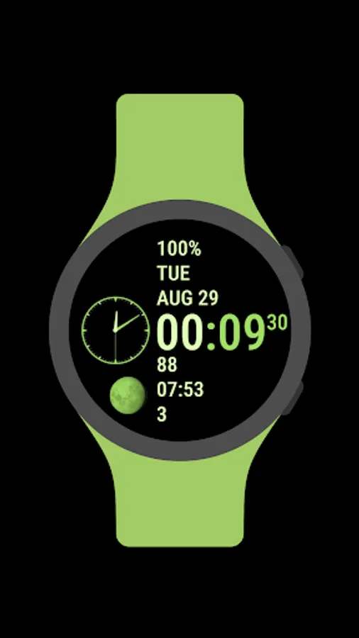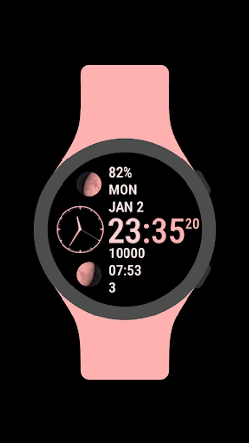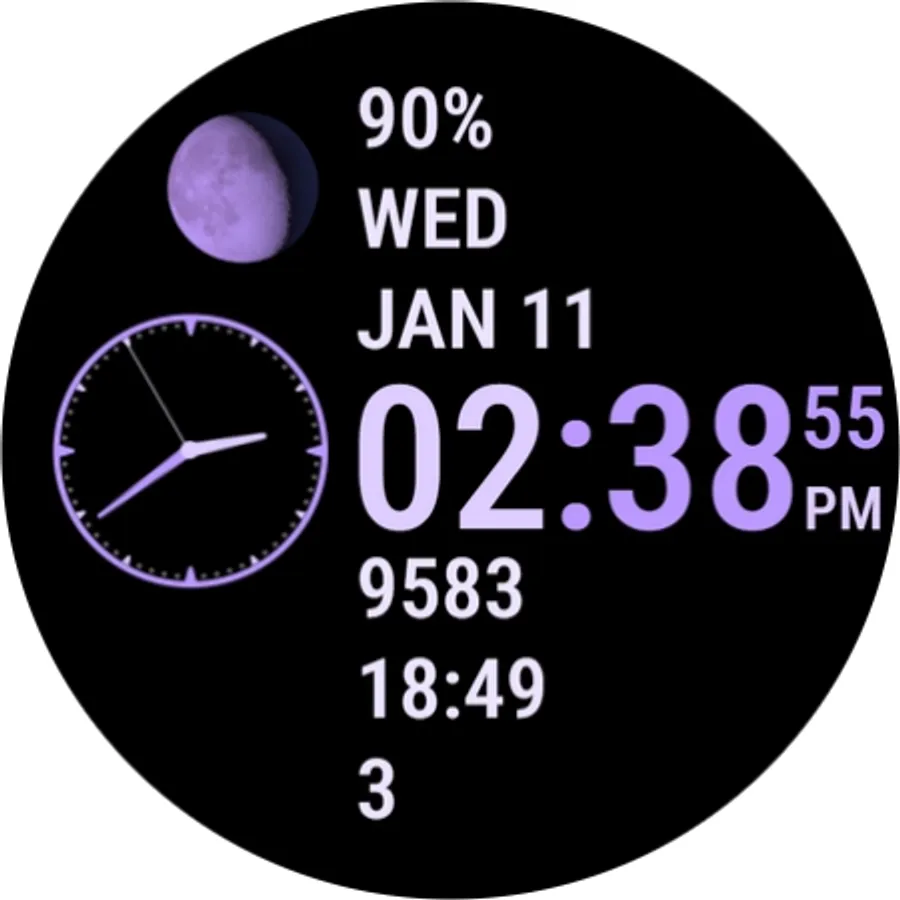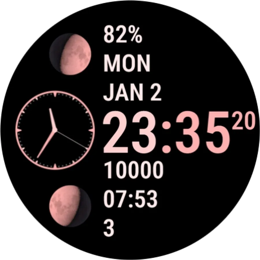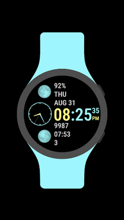 Hybrid watch face is a hybrid of analog and digital clock in one watch face with 6 complications.