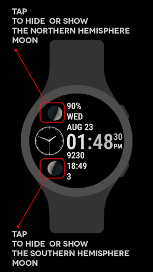 4. Northern and Southern Hemisphere moon. Tap each one of them to hide or show it.