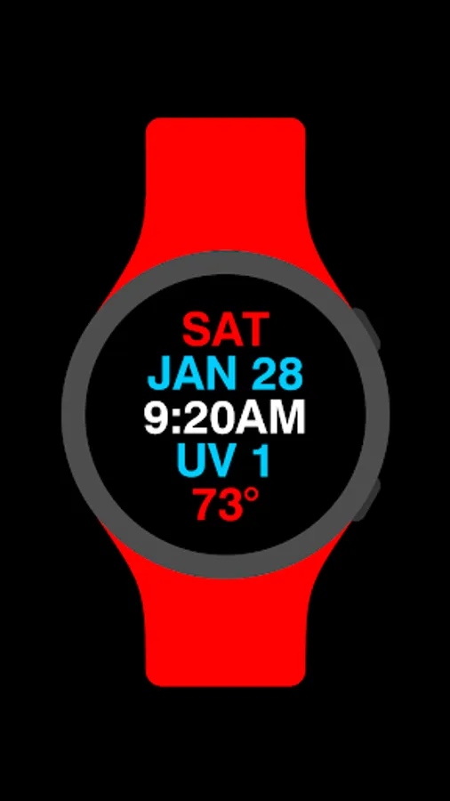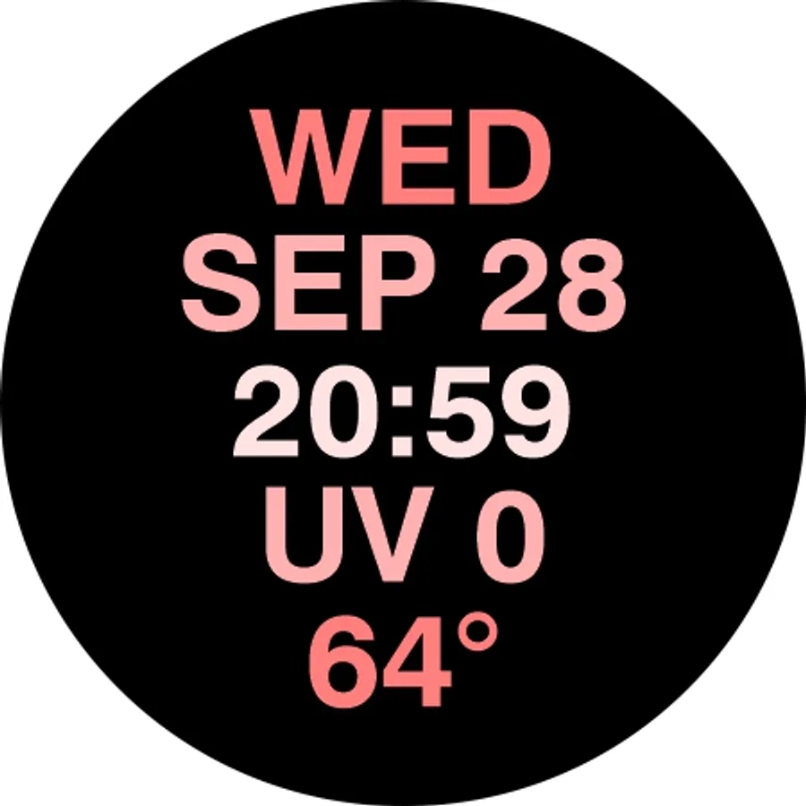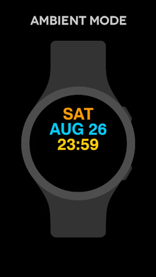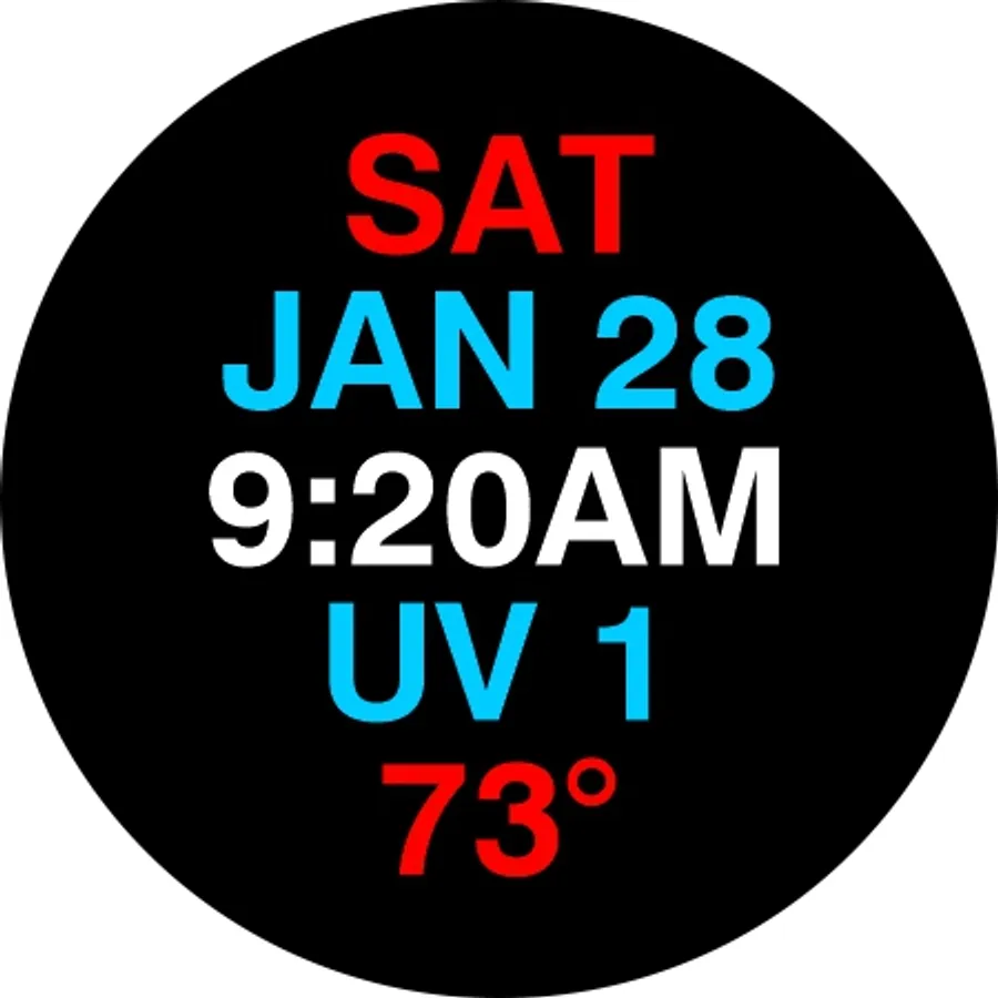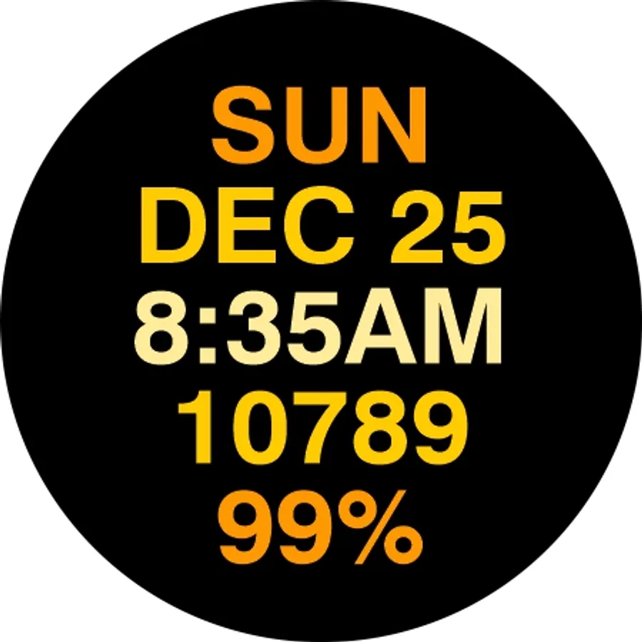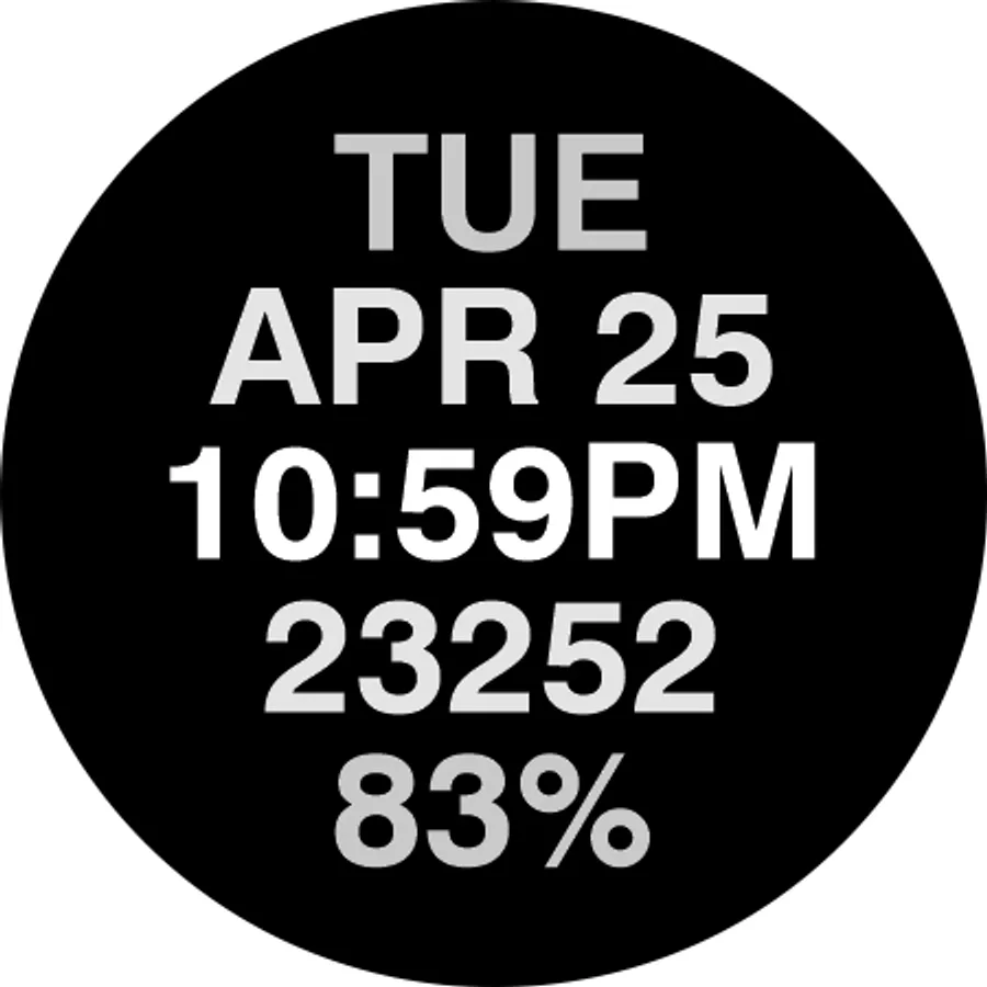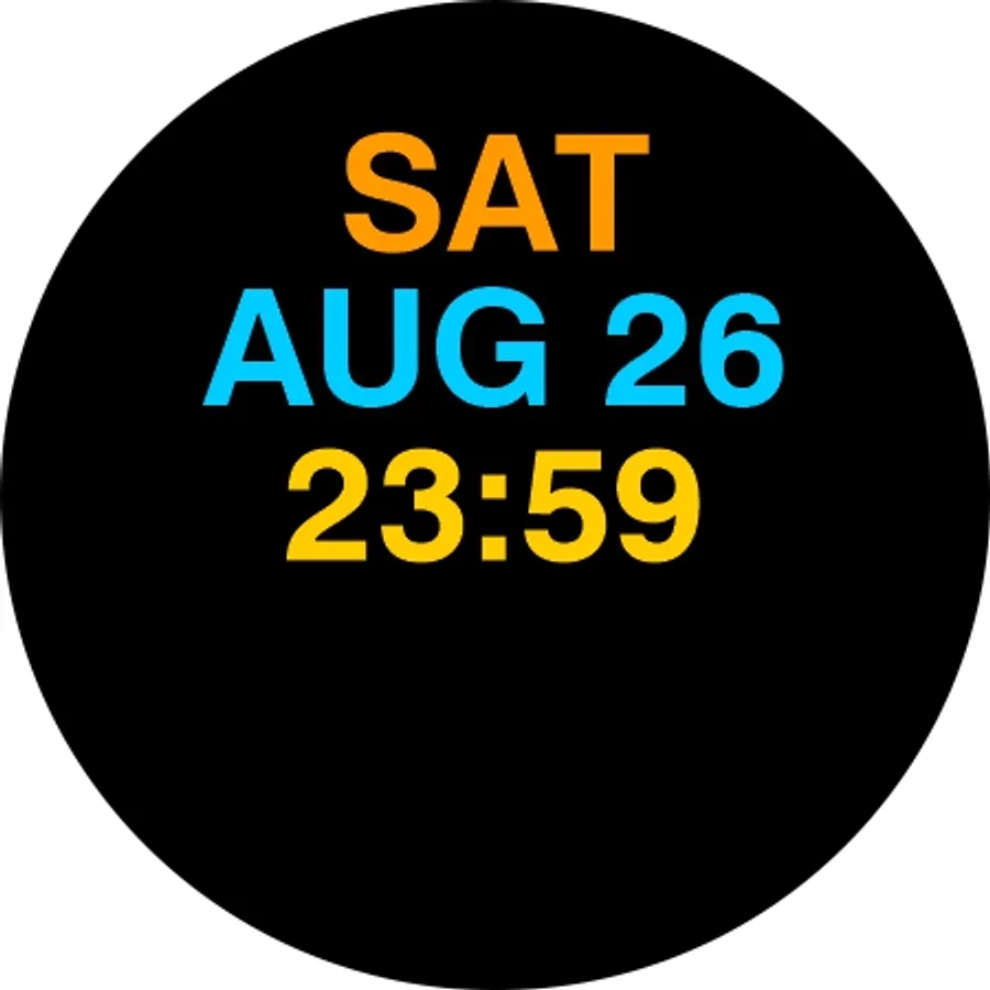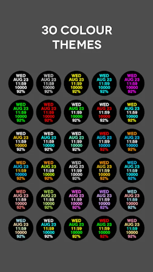 Features: 30 Colour Themes, Day of the week, month and date, digital clock and 2 complications.
