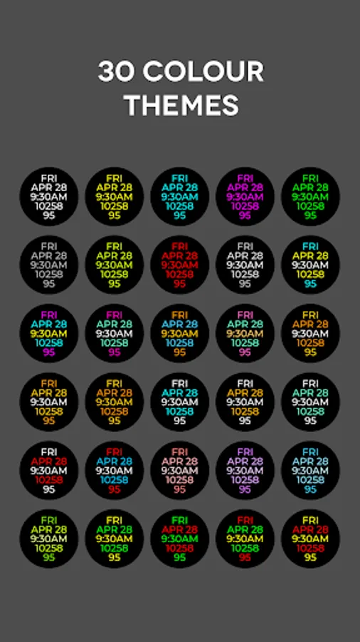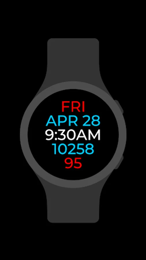 Readable Watch Face is a highly readable digital watch face for Wear OS smartwatches. There are 30 colour themes available. The default complications on display are: