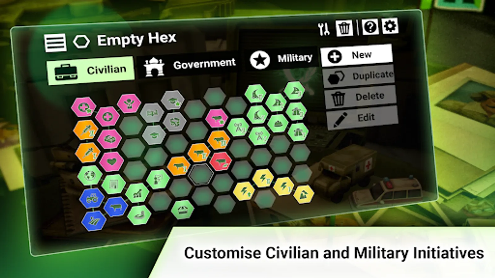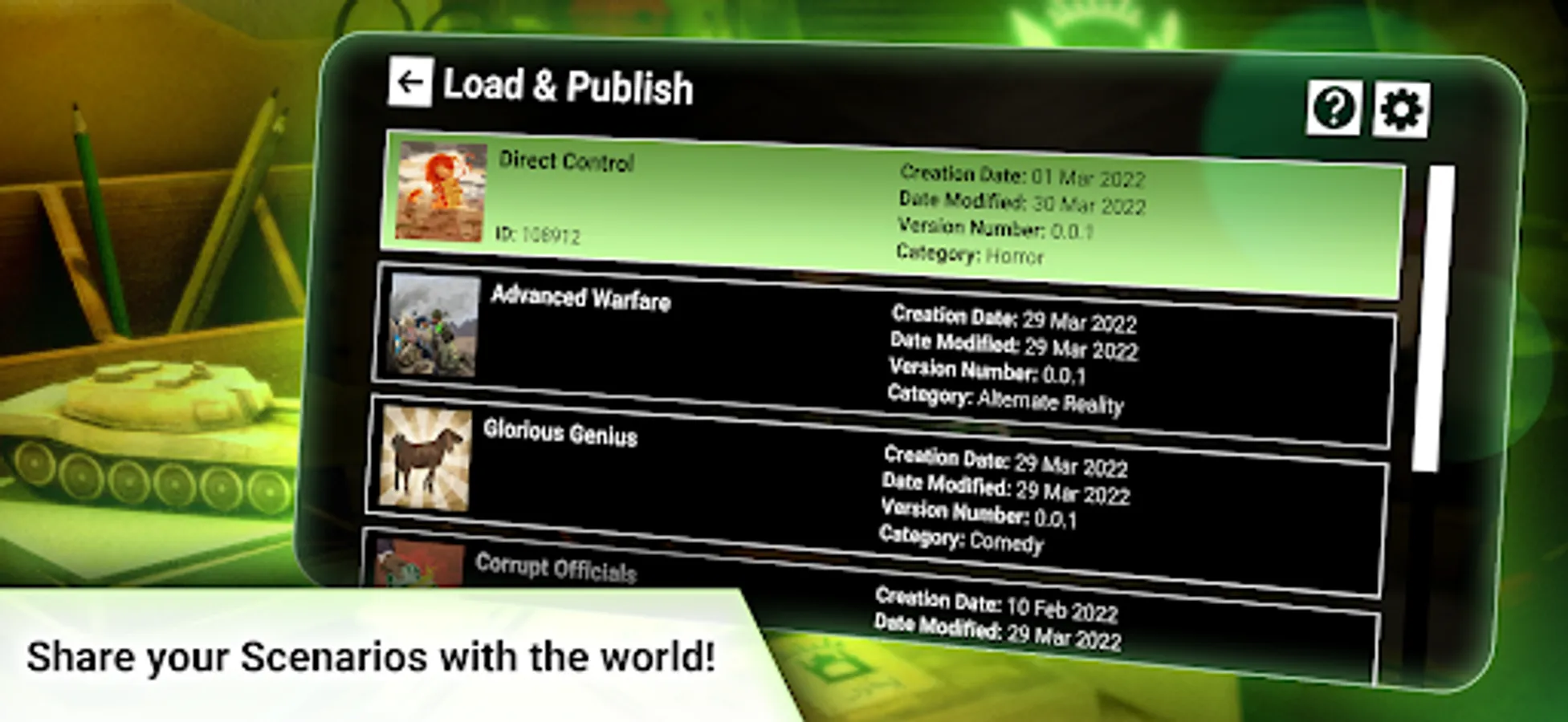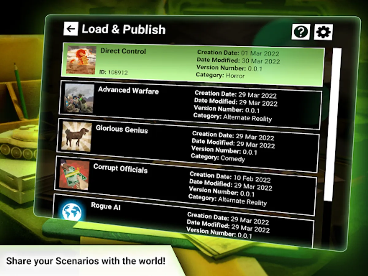 Choose all the details of your Scenario! Pick difficulty, governors, region and category. Set the stage for your epic operation, then equip yourself with a multitude of tools to make your Scenario the way you want!