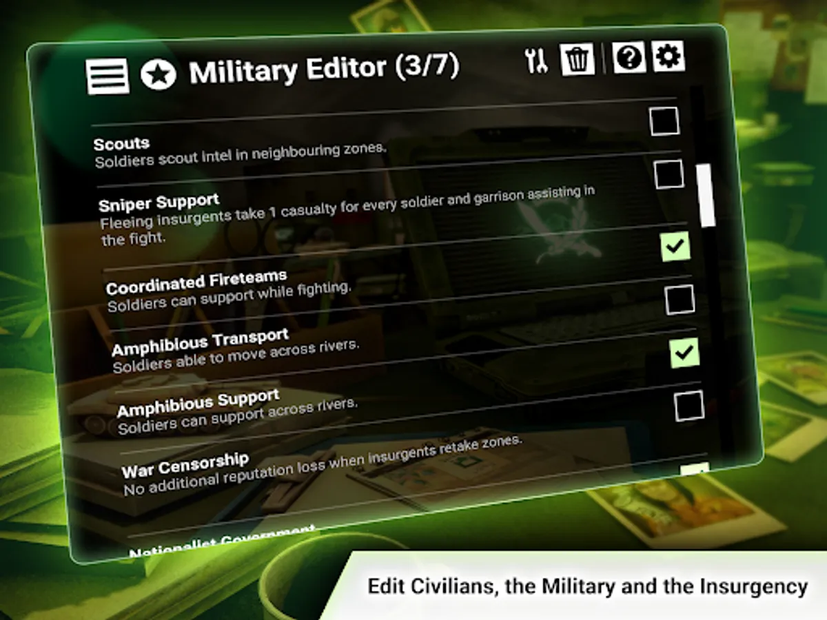 Want to create a governor with elite exo-skeleton soldiers, a charitable do-gooder who gives free healthcare to the masses or a tyrant who stamps out corruption with secret police? How about a challenge where you only have airstrikes, all initiatives cost reputation and every zone has an insurgent ambush lying in wait?