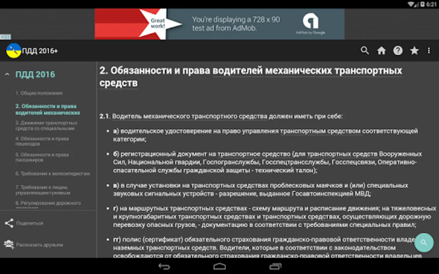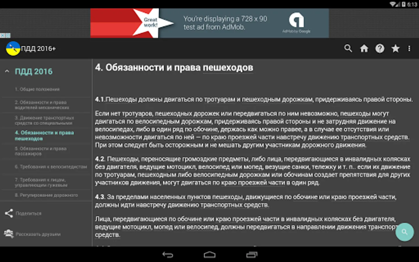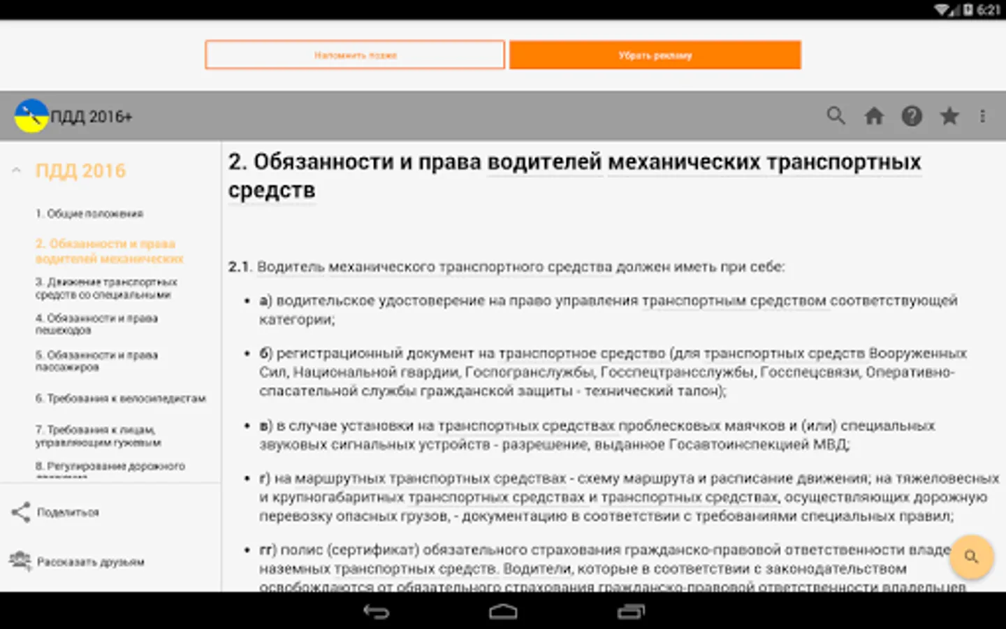 In the application, other than the rules themselves are also included all the important documents on the go: