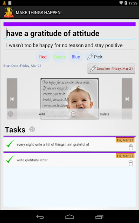 This app is fully designed to help you achieve your goals. It is designed based on scientific research done on achieving goals and staying motivated.