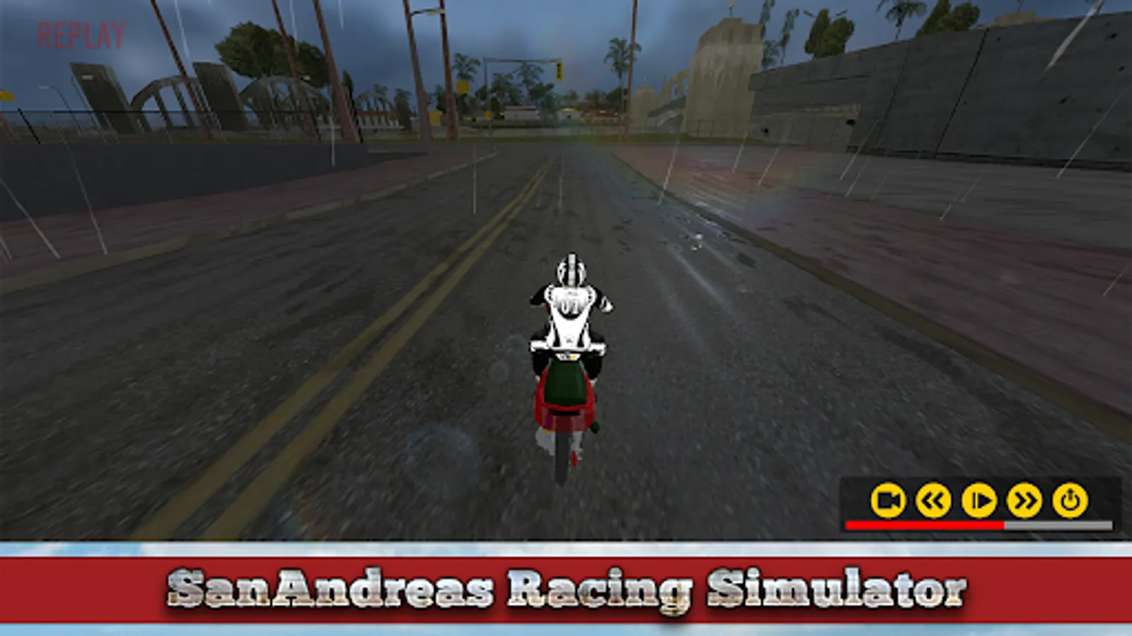 San Andreas Racing Simulator is a Motorcycle Racing Game 2023 With San Andreas City Map. In addition to Motor Drag Racing or Drag Bike which are usually played, this time also added with Wild Racing Missions in the city of San Andreas.