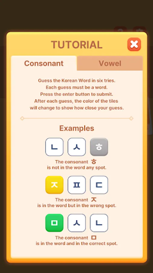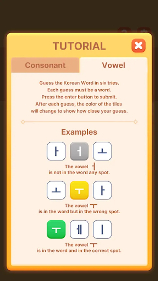 This game is easier because it is divided into a consonant quiz and a vowel quiz.