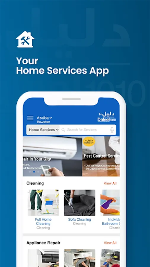 HOME SERVICE:From handyman services to home cleaning, Daleel 1010 has ensured that every requirement is covered under its home service portfolio. Customers can avail a wide range of everyday services by simply logging on to the app. On offer are handyman services, laundry services, cleaning services, appliance repair, automotive services, AC services, interior and painting, wedding planners, translators and photography services.