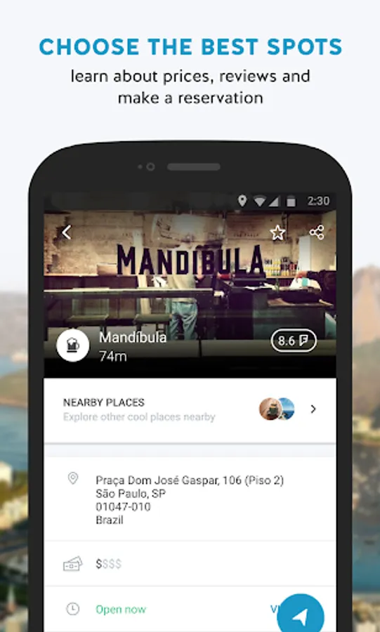 - Choose your next restaurant, check prices and reviews and make a reservation before navigating;