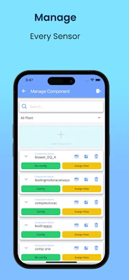 3. **Sensor Integration**: Attach and manage sensors to various components of your equipment. Monitor critical parameters like temperature, vibration, sound, and more. Sensor data is at your fingertips for real-time analysis and predictive maintenance.