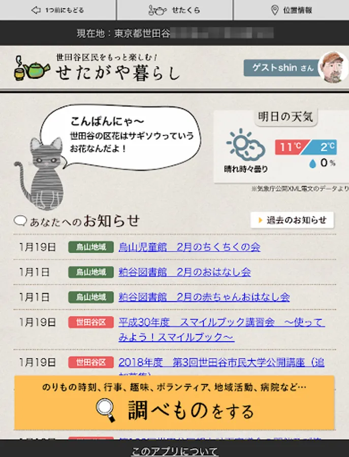 情報内容はシニアに的を絞り地域活動や生活に必要な情報=区のお知らせ、イベント行事、のりもの案内、お買い物・商店街情報、健康、体力づくり、美術館、病院、災害対応、趣味、ボランティア等々の検索が素早くできるように工夫してあります。