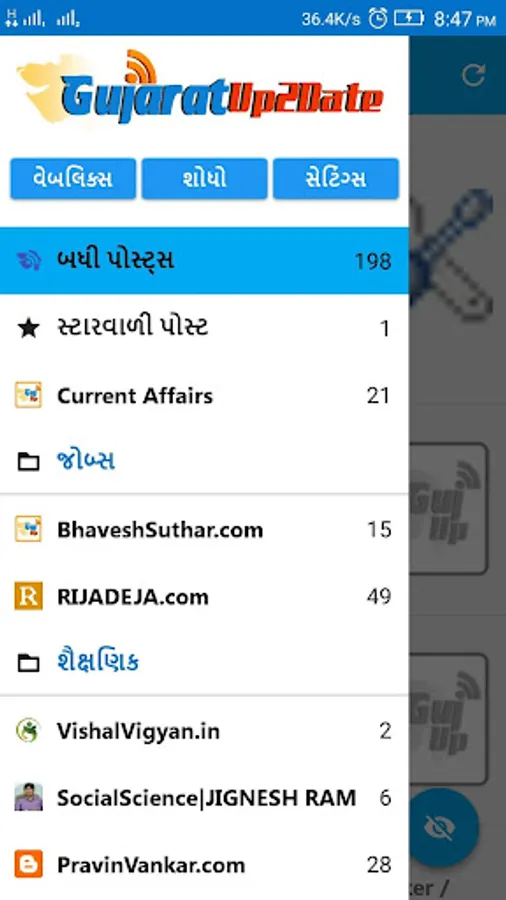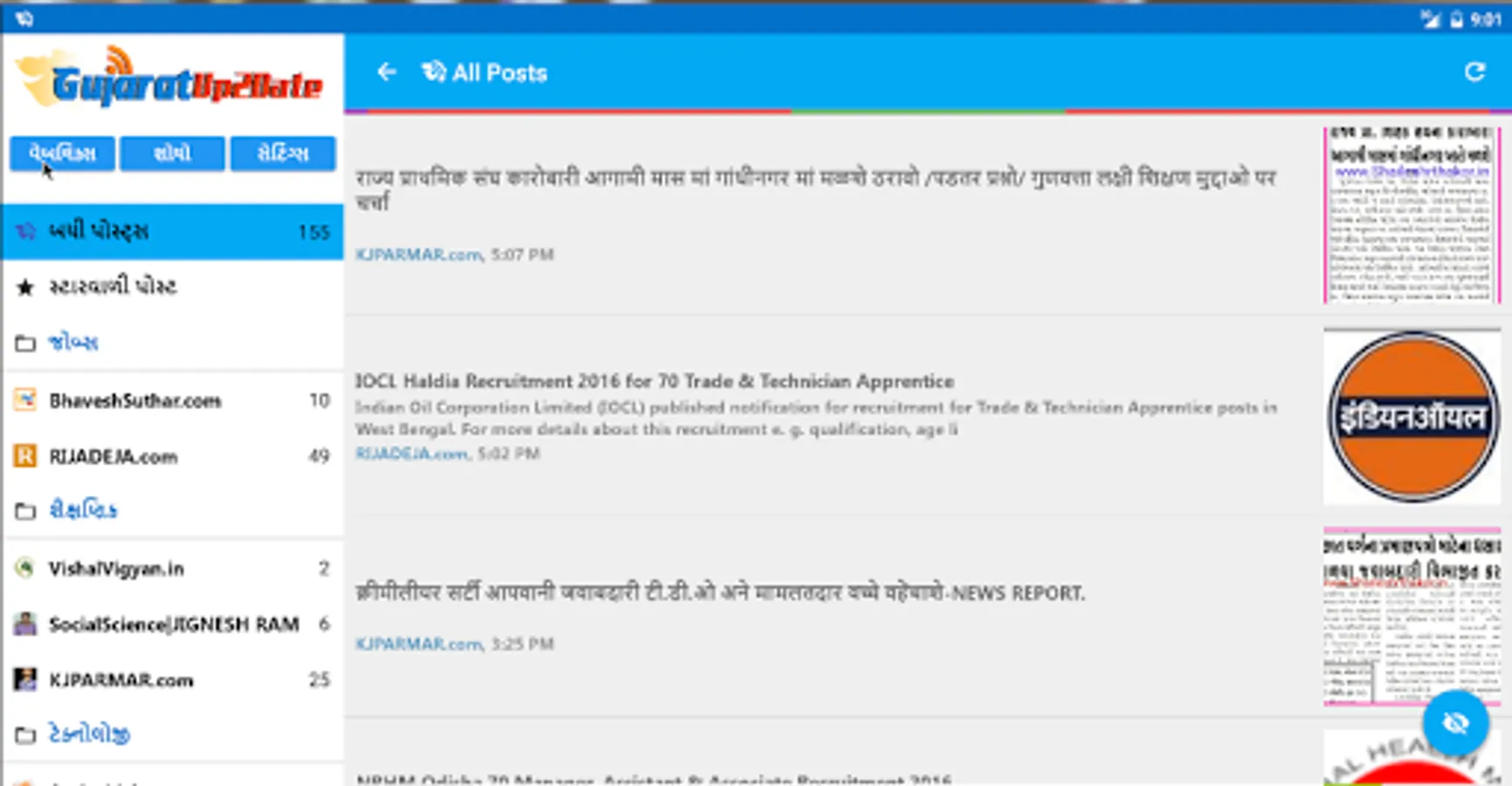 GujUp is a first ever RSS feed reader app in Gujarati. It has very important in built feeds that will give you all updates about education, jobs, news, tech info. You can also add your favourite site or blogs. App has fully customizable interface. You can search, add, delete and arrange RSS/Atom feeds with keep post duration setting.