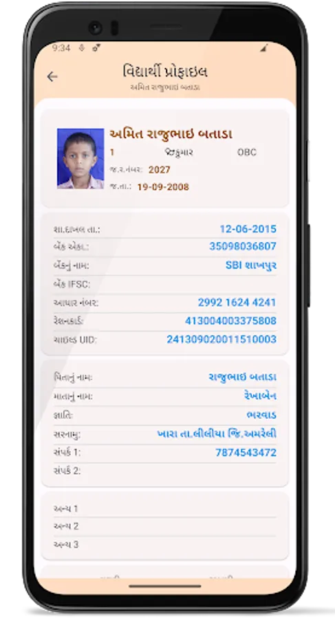 # Student Profile with photograph and basic details