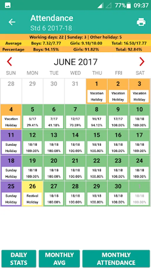 This app is very useful tool for teachers in India. Just add your students basic details in the app. Then You can track your students' attendance record by clicking few finger taps. You can get many types of reports to fill figures in official statements and forms. Keep all students basic details handy.