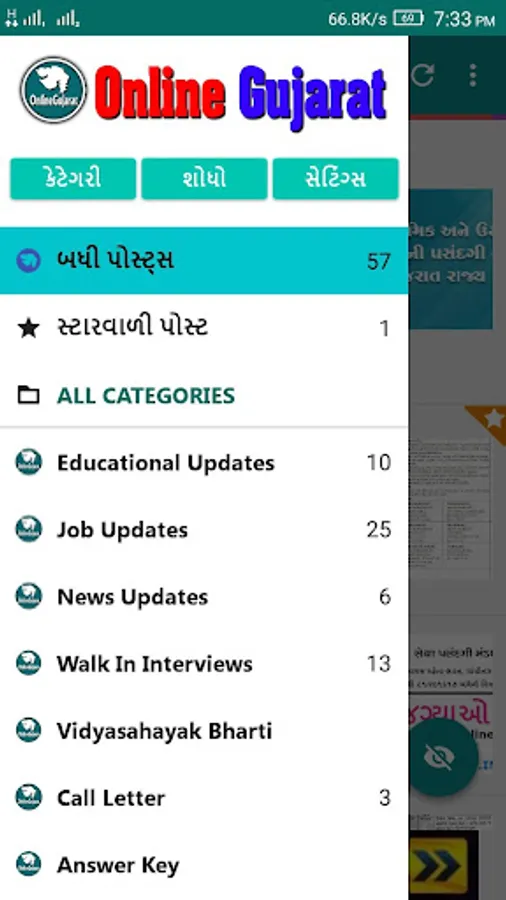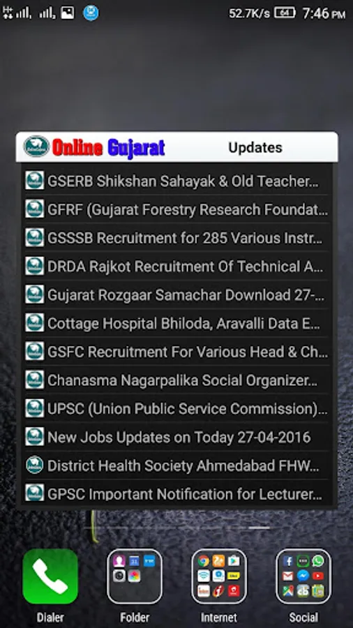 OnlineGujarat app is an android app of website www.OnlineGujarat.in. You can get daily updates for Primary Education,Government Job,Gk,Study Materials, Answer Key,Results. You need internet connection for access this information.