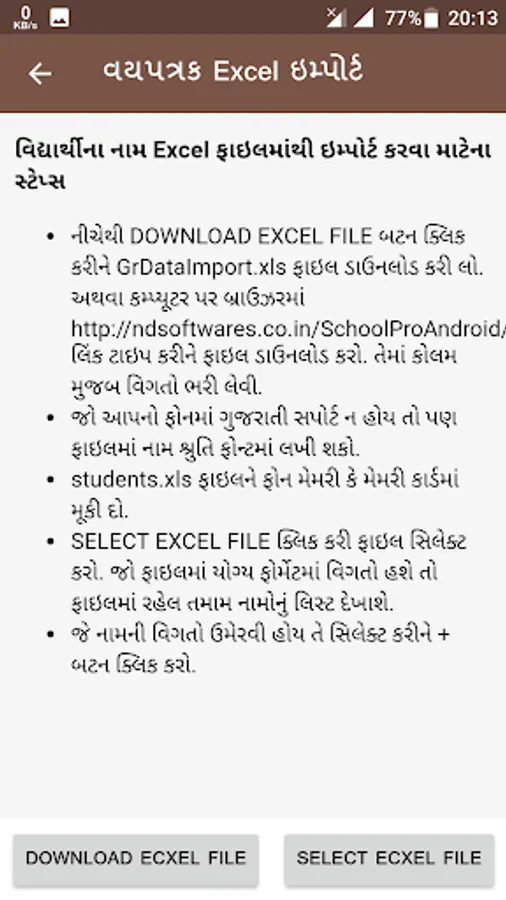 This app is a first public app for School Management in Gujarati. This app is developed in order to manage school head related stuffs like general registration records, school profiles, student profiles etc. within the mobile devices. This app provides easy functions for performing data-entries, editing and searching and printing also. School heads and teachers can manage their office records on the go. Primarily this app has limited functions as some more features will be added gradually in future.