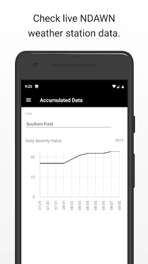 Now you can check live North Dakota Agricultural Weather Network (NDAWN) weather station information from your mobile device. Keep track of all your fields and get blight alerts. Track field details and calculate data to date. View Ag weather specific to your weather station. Get blight notifications and specific alerts.