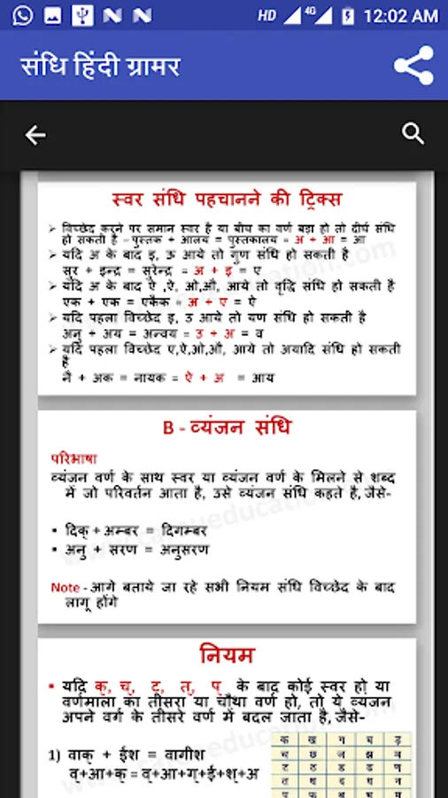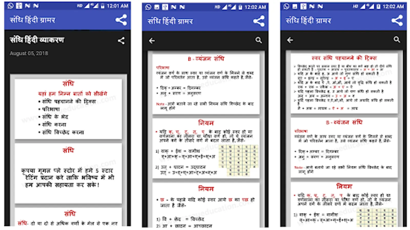 This app have all useful tricks and rules for Swar sandhi, Vyanjan sandhi and Visarg sandhi.