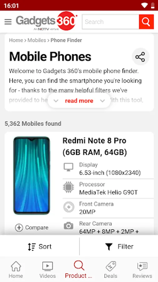 The Gadgets 360 mobile and tablet finder will help you select the device best suited to your budget and requirements. The app also includes the latest content from NDTV's shows like Gadget Guru, Cell Guru, and the Prime tech band.