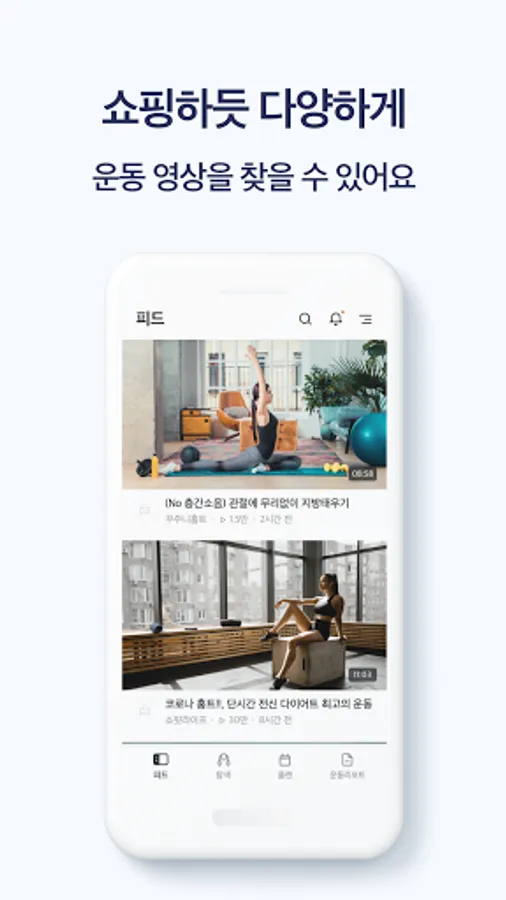 -Feed: You can find exercise videos on various topics such as diet dance, pilates, yoga, and tabata.