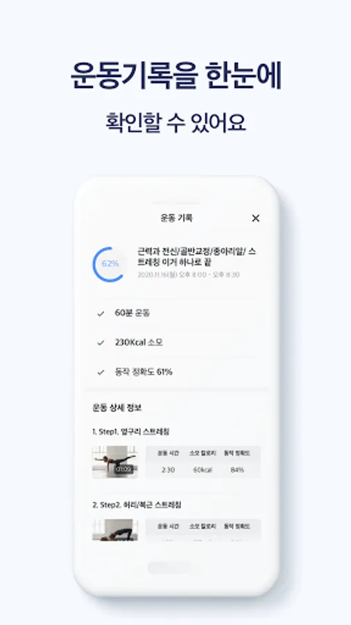 -Exercise record: You can check your exercise record at a glance, such as exercise time, calories burned, and motion accuracy.