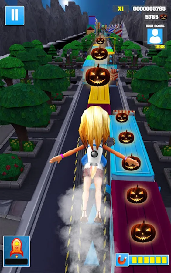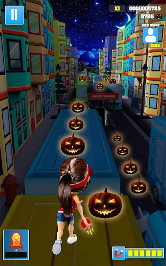In this night princess run 2019 game Collect pumpkins as you take your princess to run through the subway where you can surf, dash and jump along the top of trains and temples to collect exciting powerups to help you reach the highscore in this exciting game 🏃 Princess runner Subway Bus: Rush Endless Running Games 3D 2019 Free right now!