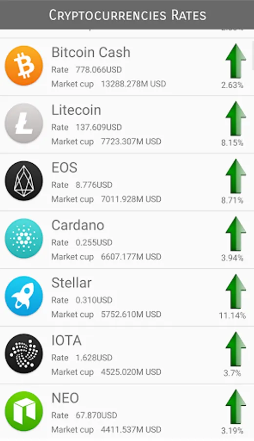 Click the currency you like to get its rank, trend (hourly, daily and weekly), volume and more.