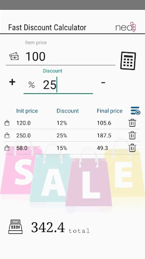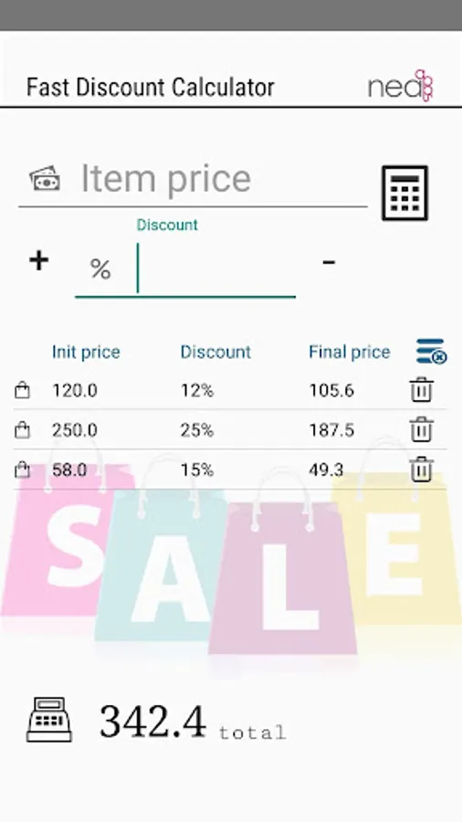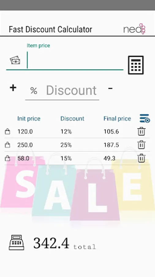 Instead of wasting time on typing and calculating the final price using the device calculator, With this app you just need to insert the item price and discount percentage and that is it.