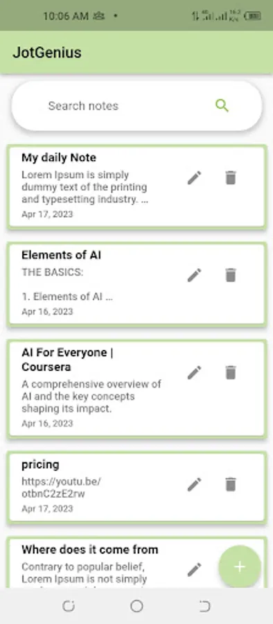 JotGenius is a versatile note-taking app that helps you capture and organize your ideas, thoughts, and tasks. With an intuitive interface and powerful features such as search, and customization options, JotGenius makes it easy to stay productive and focused. Whether you're a student, professional, or creative individual, JotGenius is the perfect tool to help you stay organized and achieve your goals.